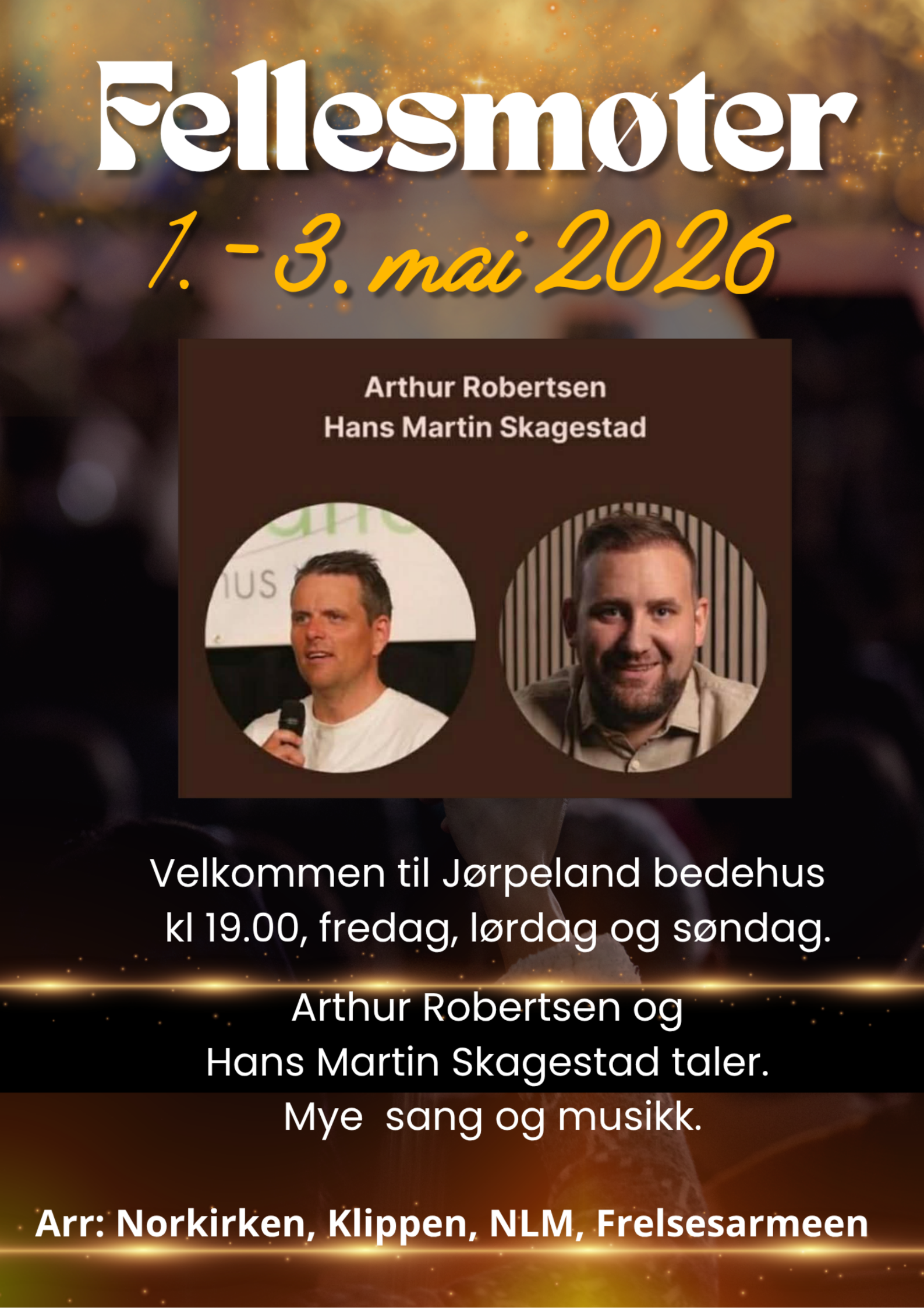 Velkommen til fellesmøter 1. - 3. mai på Jørpeland bedehus. Det blir møter fredag, lørdag og søndag kl 19:00.
